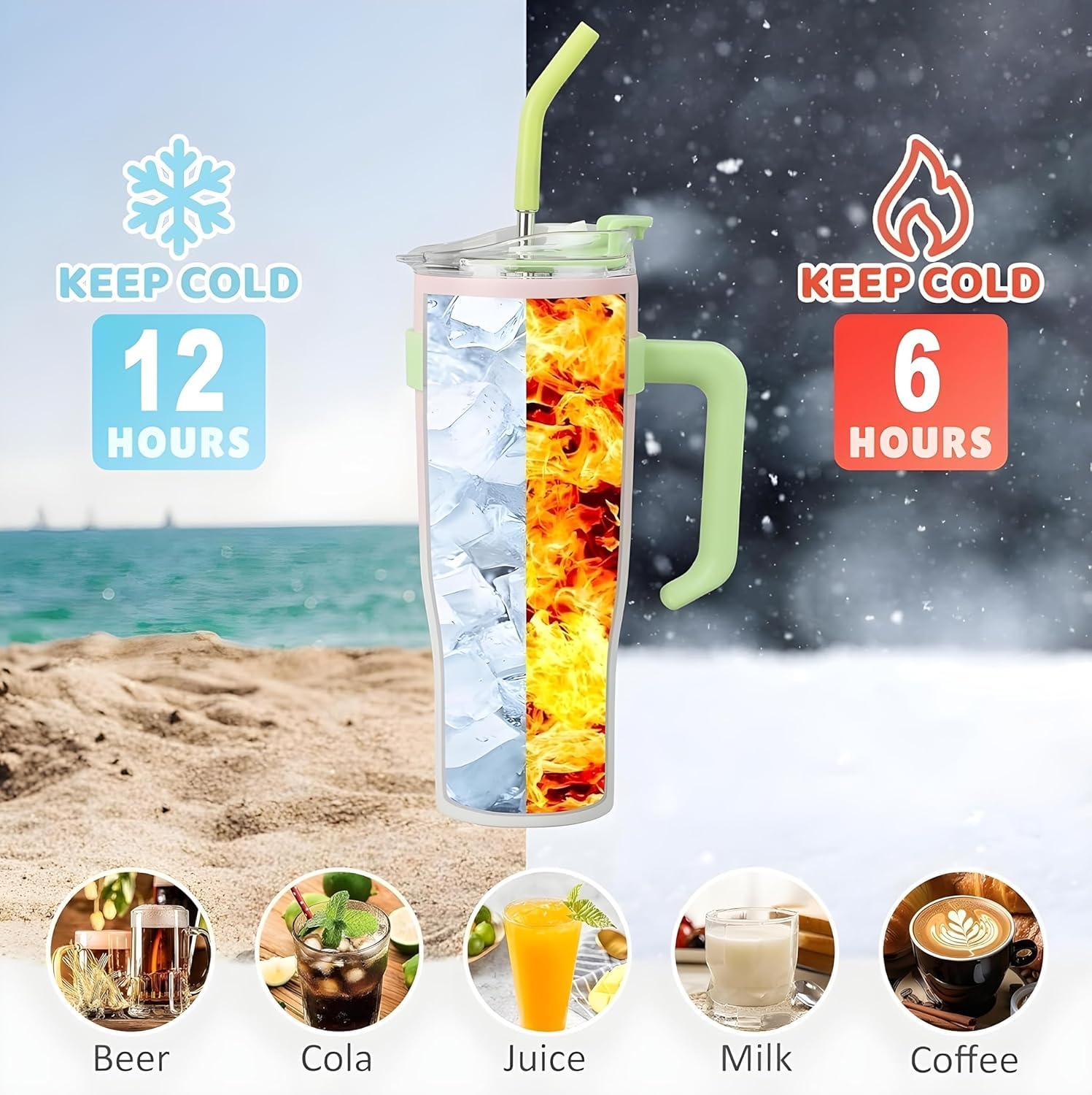 1.2L stainless steel insulated tumbler with handle, straw & leak-proof lid. Perfect for office, gym, travel, and everyday hydration.