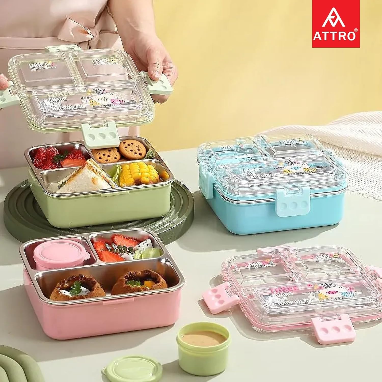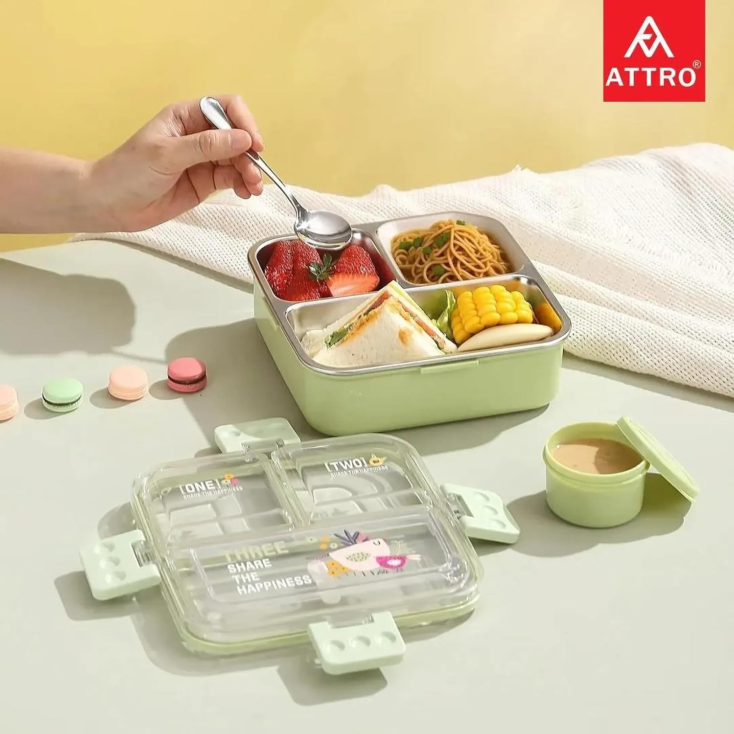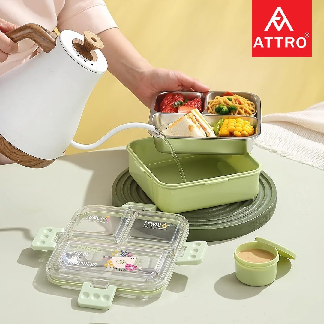 Crafted from high-quality stainless steel and food-grade PP material, it is BPA-free, safe, and long-lasting. The three compartments make portioning easy, allowing you to pack rice, curry, snacks, fruits, or sauces without mixing flavors. Its leak-proof design ensures even semi-liquid foods like yoghurts or dals stay secure.