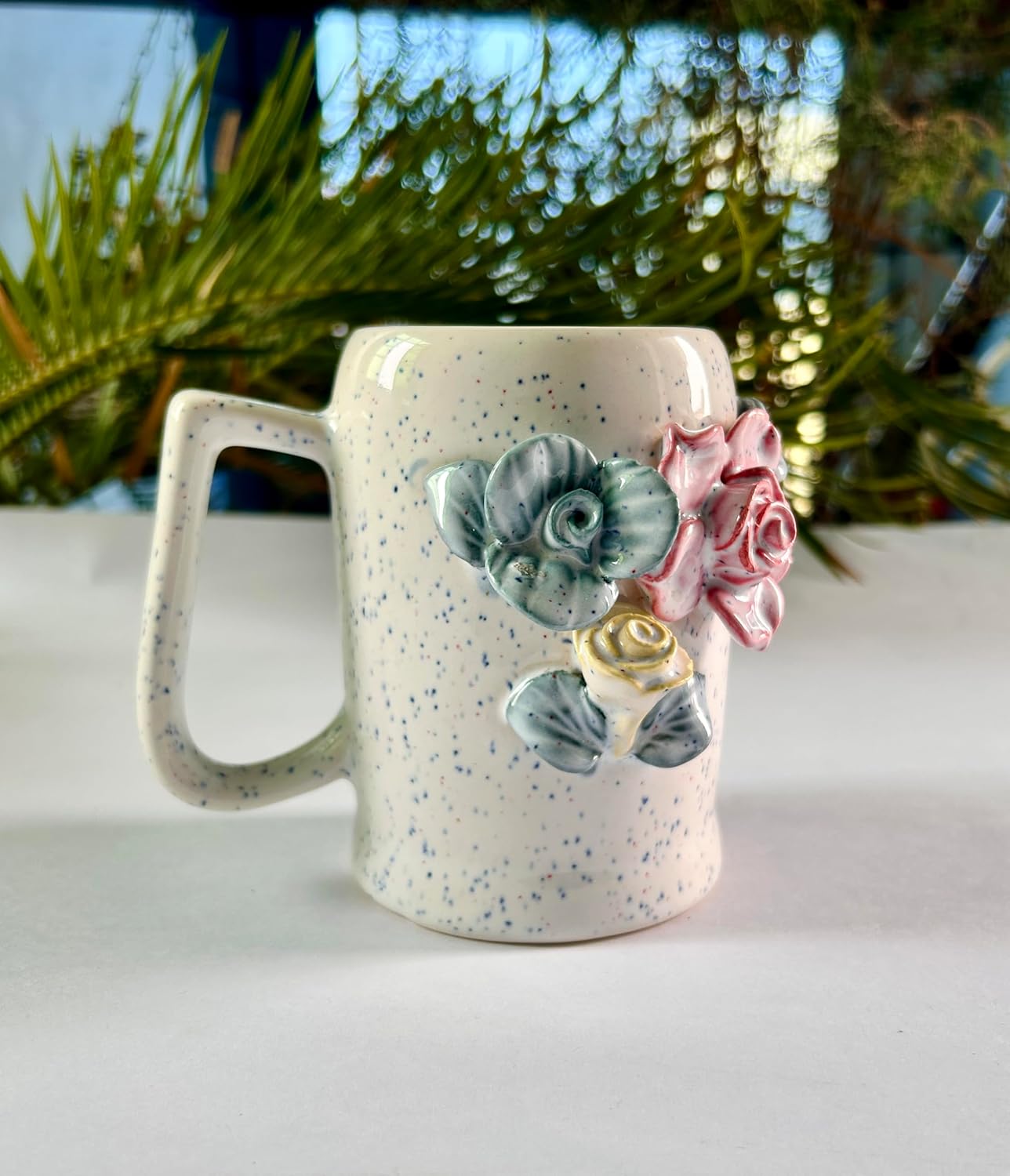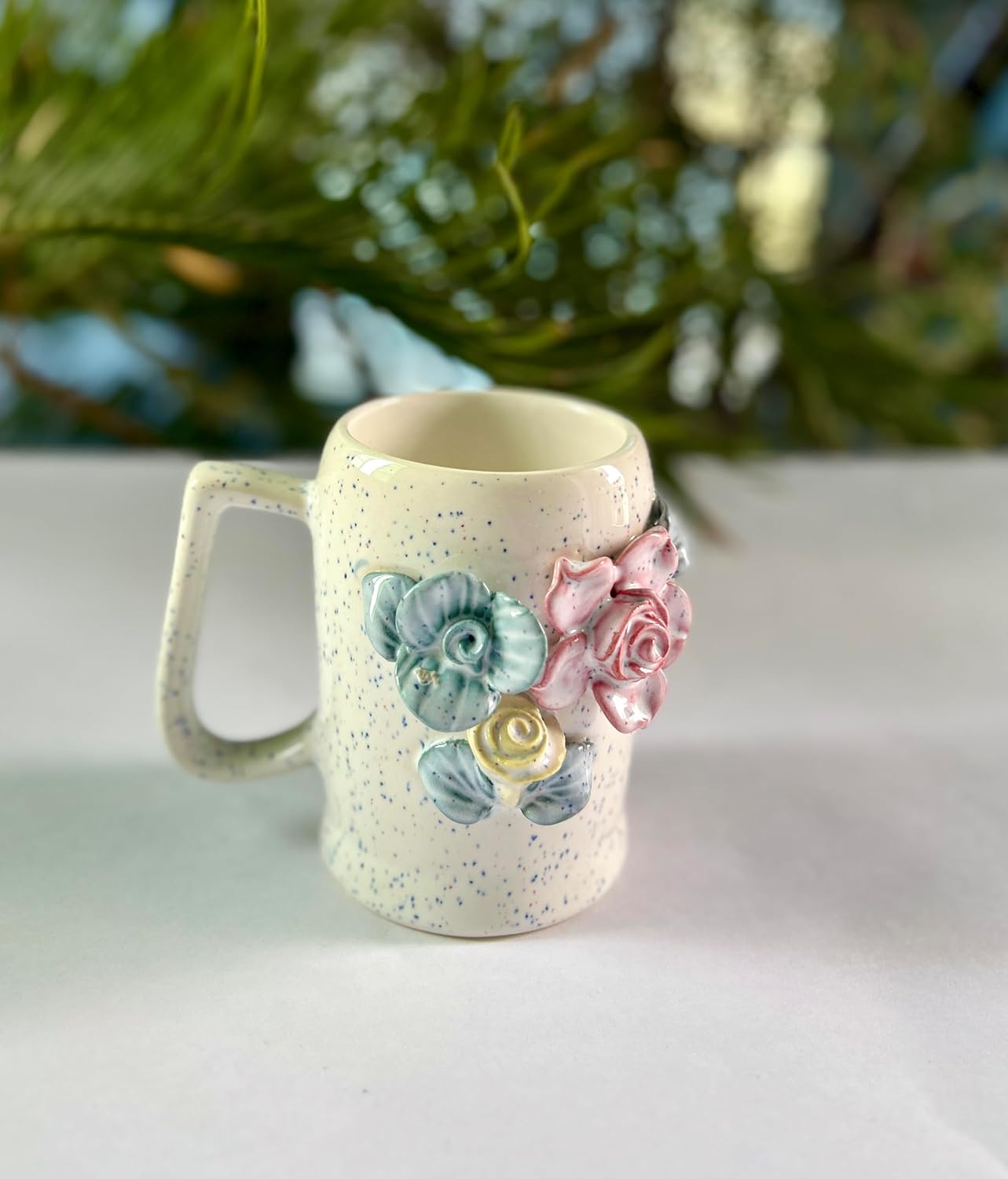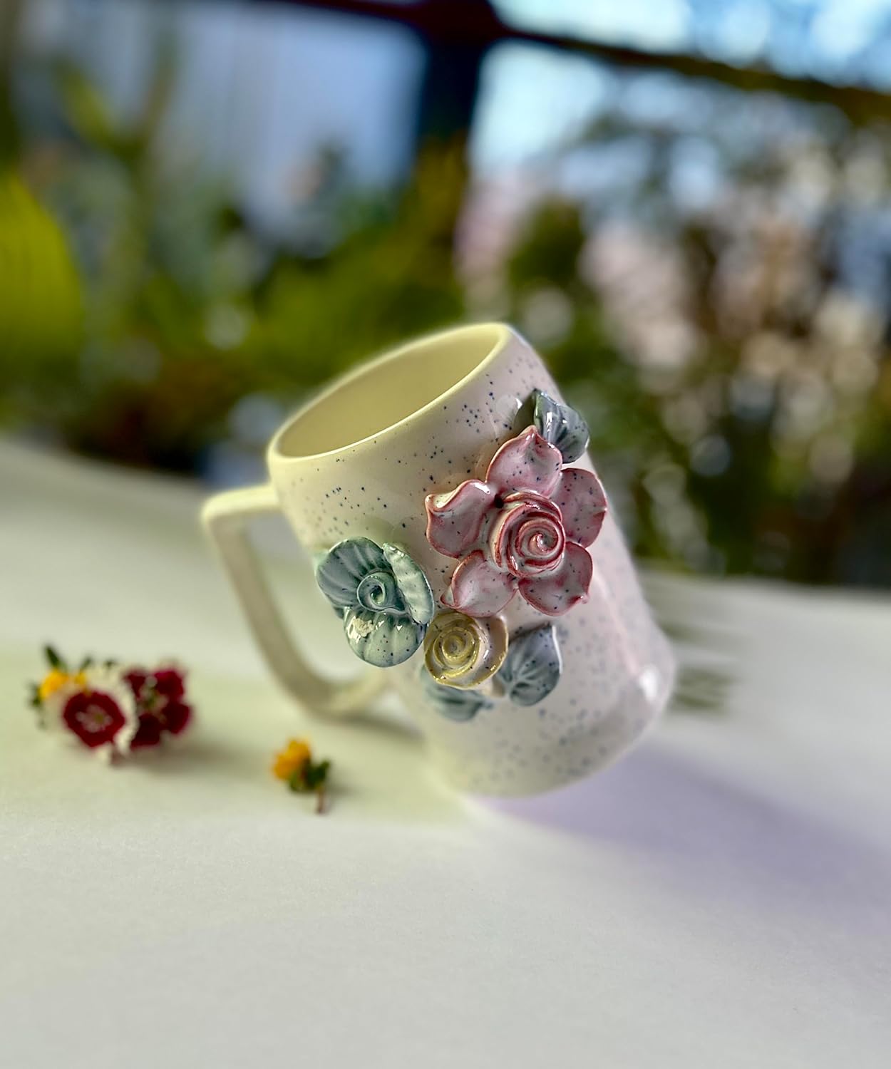 Handcrafted with exquisite attention to detail, the mug features raised ceramic flowers in beautiful shades of blue, pink, and yellowβcreating a stunning 3D effect that feels both premium and unique.