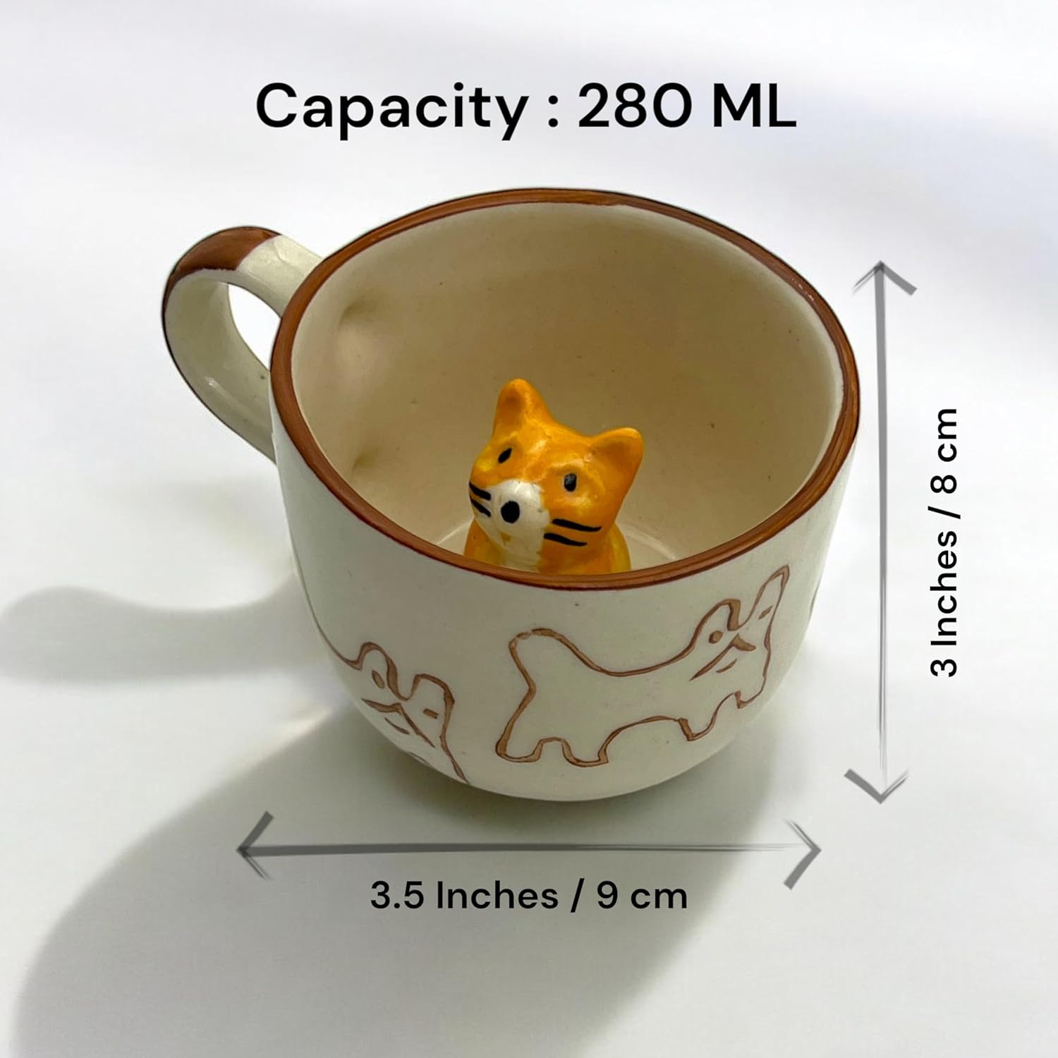 Handcrafted with love from durable, high-quality ceramic, this charming mug features a playful paw-print pattern on the outside and a 3D kitten figurine hidden inside, offering a delightful surprise with every sip.