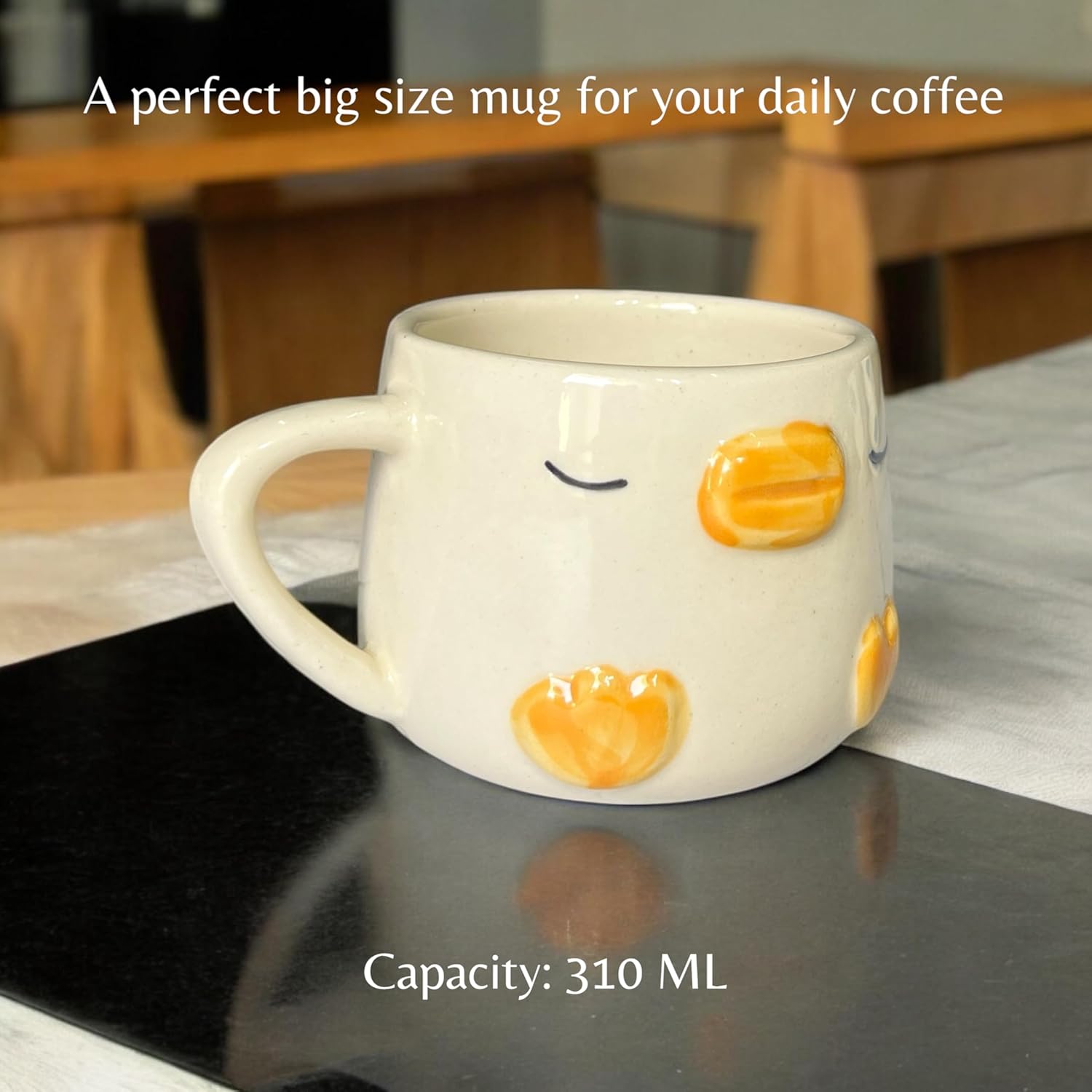 Crafted from premium-quality ceramic, itβs durable, lightweight, and perfect for both hot and cold drinks β whether itβs your morning coffee, evening tea, or a cozy cup of hot chocolate. Its comfortable handle and sturdy build make it ideal for everyday use.