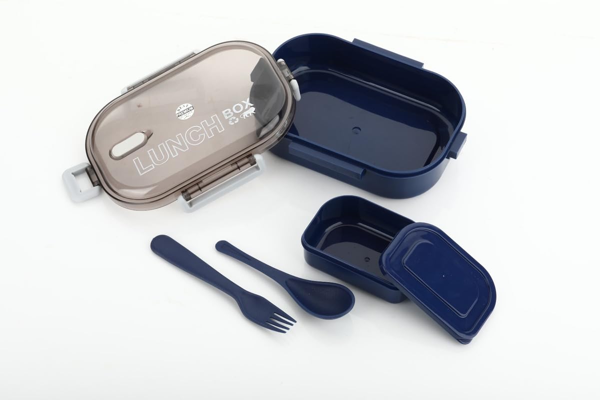 Crafted using food-grade PVC material, the lunchbox is safe, durable, and lightweight. The airtight sealing lids prevent leakage, making it ideal for carrying liquid curries, gravies, and oily foods without any spills. It also includes a spoon and fork set, neatly placed inside for easy on-the-go eating.