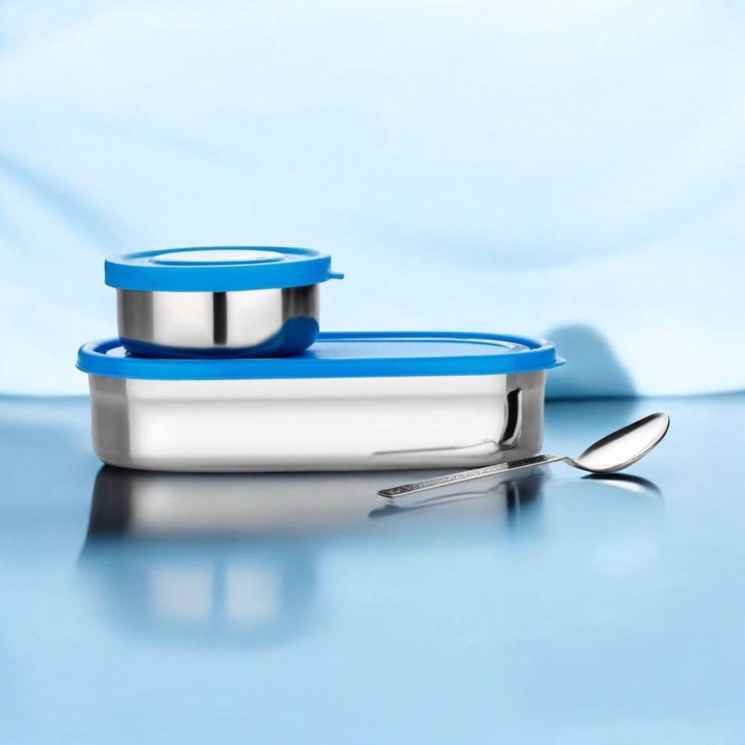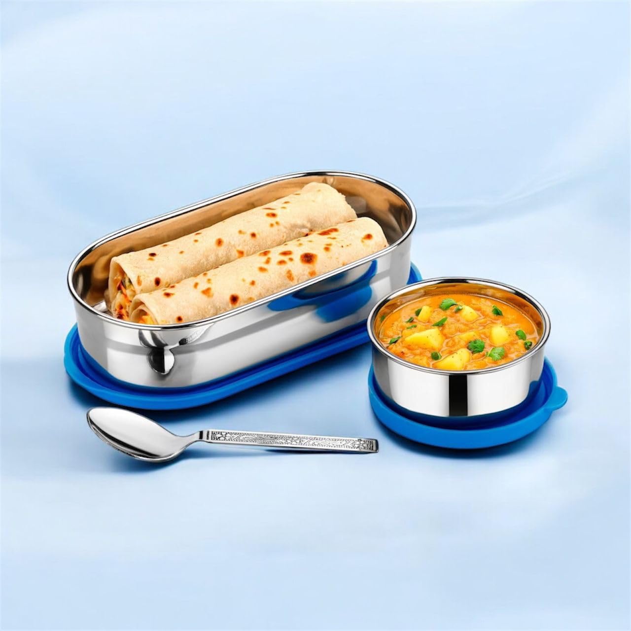 Crafted from premium food-grade stainless steel, it ensures complete hygiene, rust-resistance, and long-lasting durability. The lunch box comes with 1 main container + 1 extra small steel container (250ml), ideal for curries, sauces, salads, or chutneys. The airtight & leak-proof lid keeps meals fresh and prevents spills in bags, lunch carriers, or backpacks.