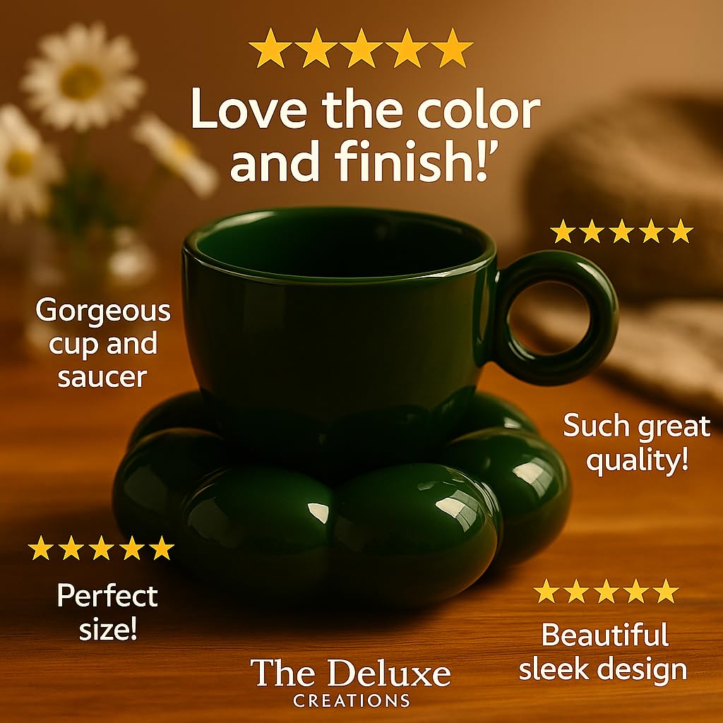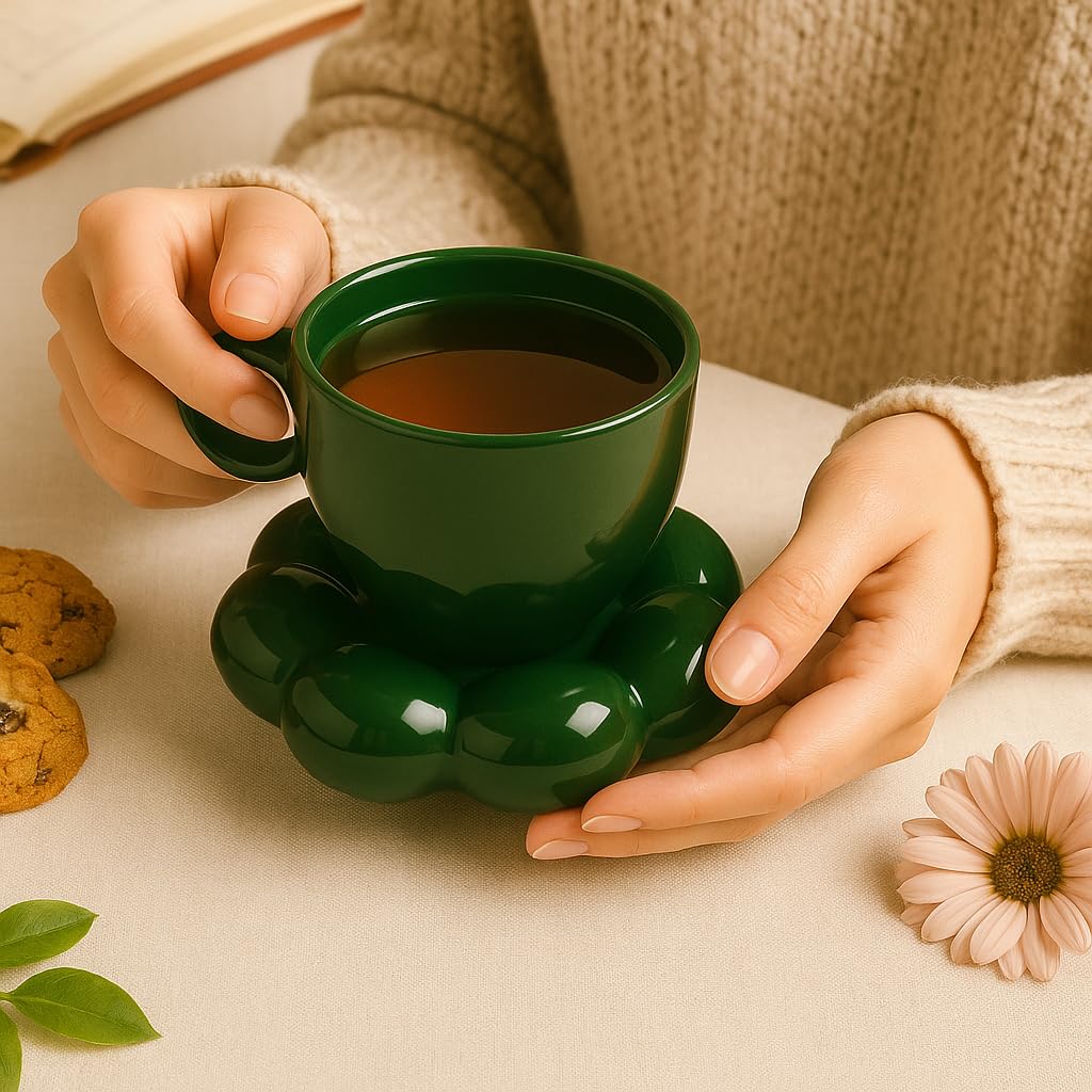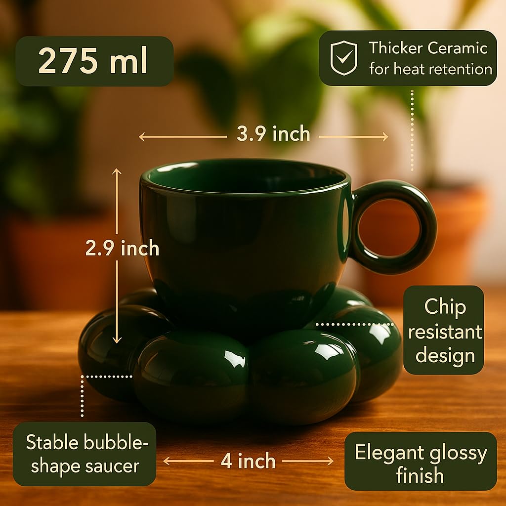 • Name: Bubble Ceramic Cup and Saucer Set – Unique Green Coffee and Tea Mug