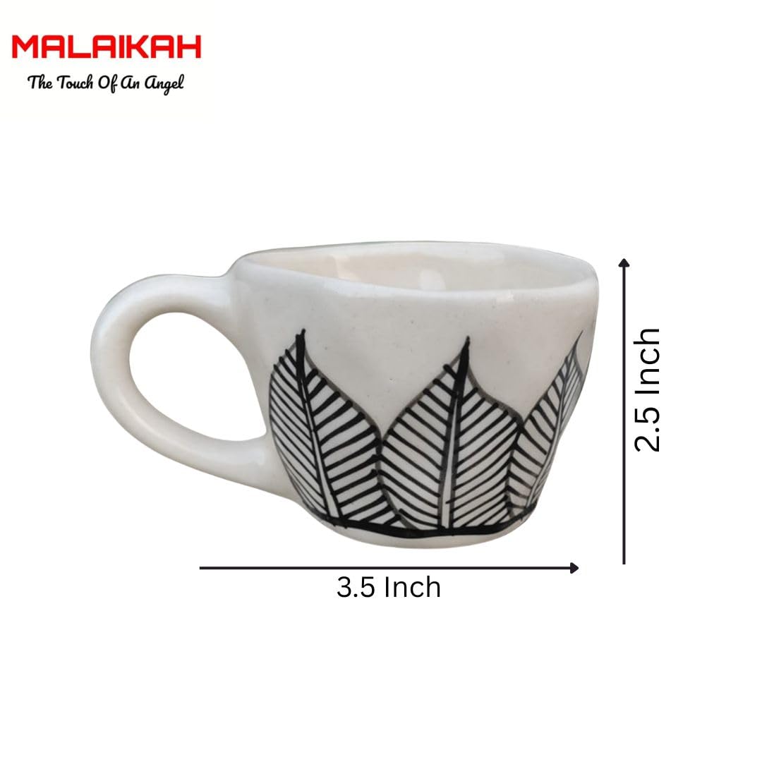 This beautifully designed ceramic cup and saucer set features a minimalistic black leaf print, blending simplicity with sophistication. Perfect for serving coffee, tea, milk, or hot chocolate, this elegant cup is ideal for both home and office use.