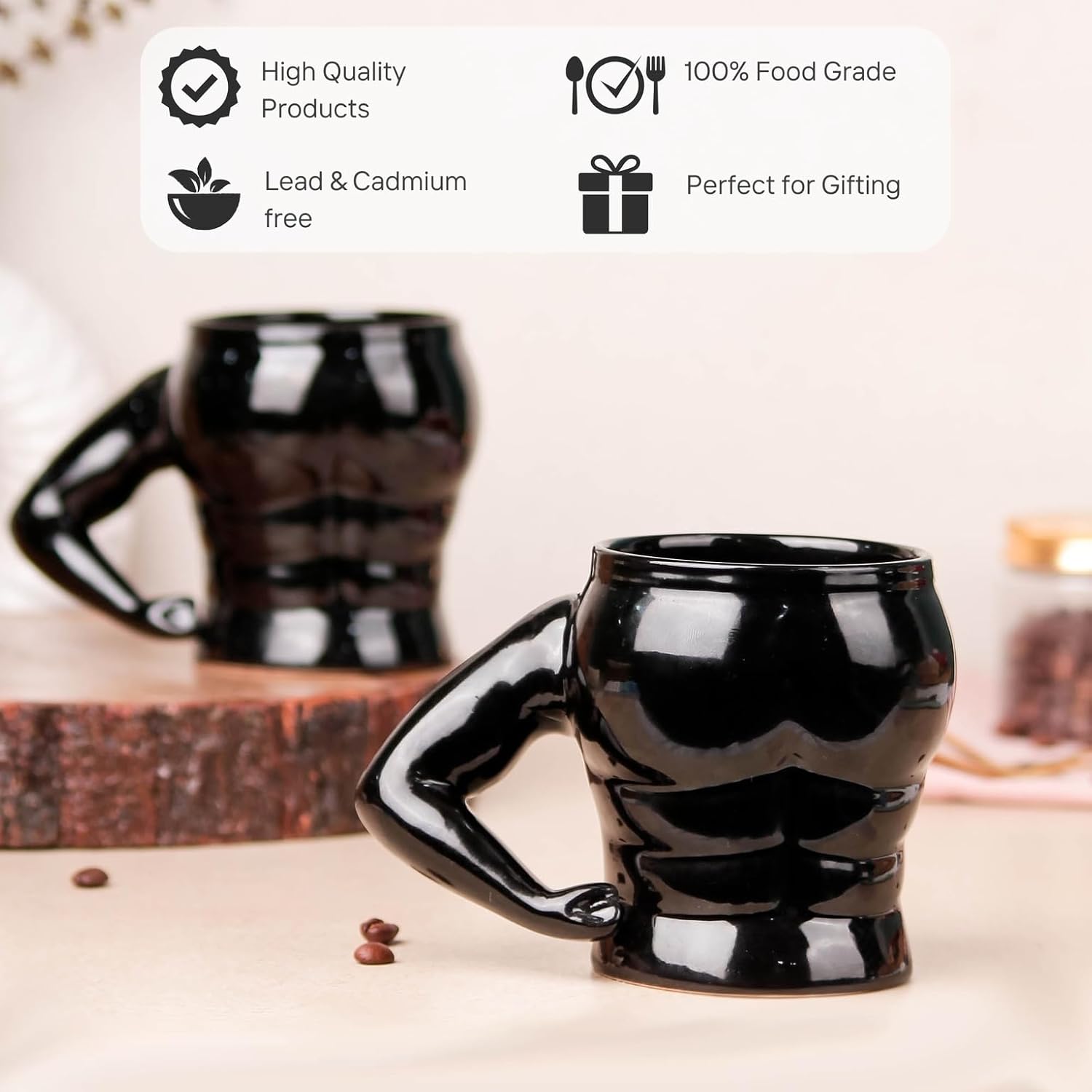 πͺ Unique Muscle Design: Fun and creative mug shaped like a muscular torso.
