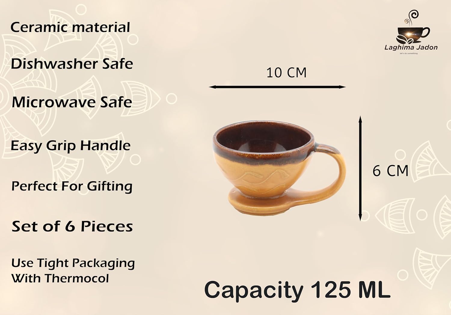 Crafted from high-quality ceramic, these cups are microwave safe, dishwasher safe, food-safe, and vegetarian-friendly (contains no bone ash). The smooth glazed finish ensures stain-free use, easy cleaning, and long-lasting shine.