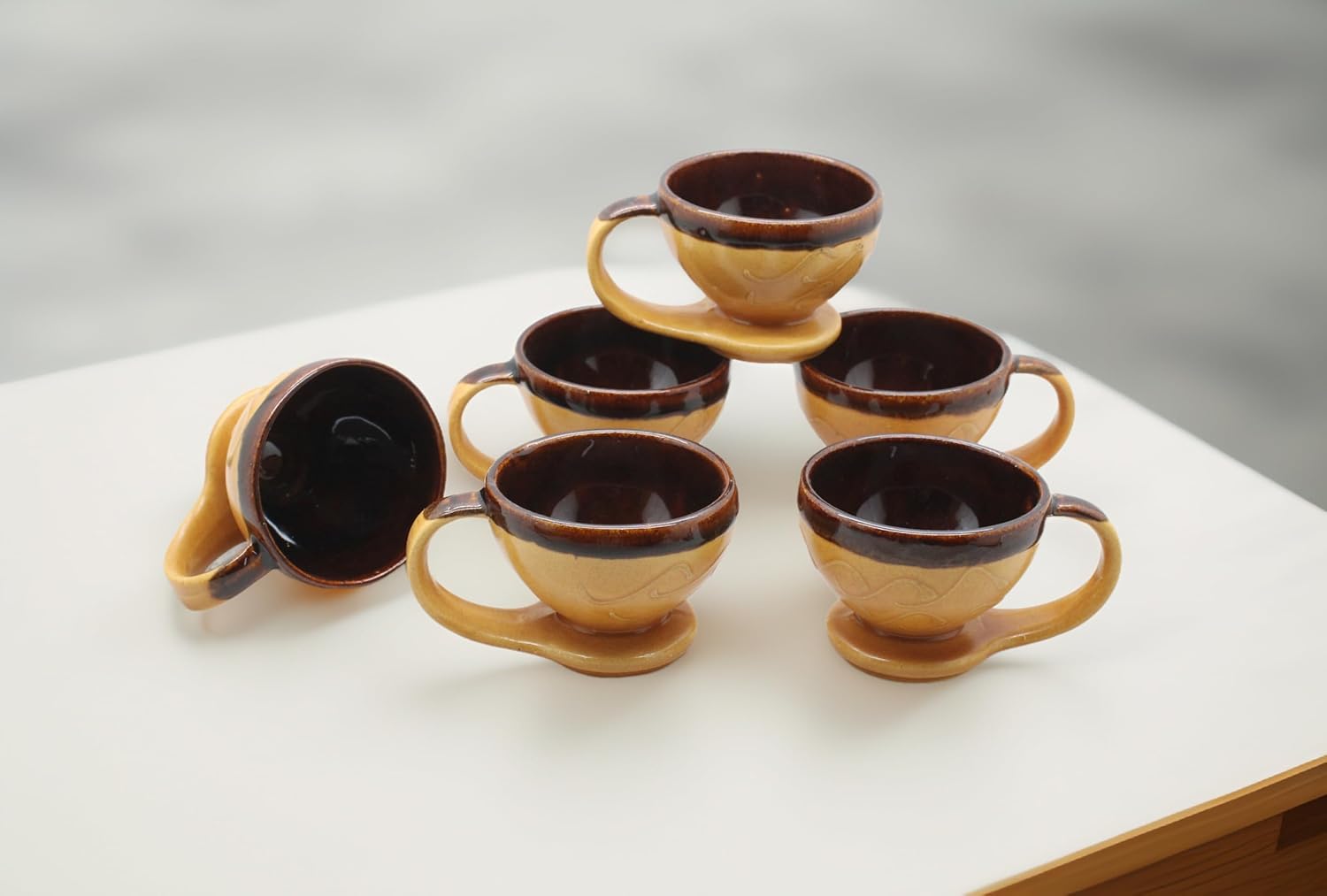 Designed in a unique Worldcup-style shape, these compact yet spacious cups add a quirky, trendy look to your drinkware collection. Each cup features a rich brown & multicolor combination, giving your table an elegant, warm, and vibrant feel.