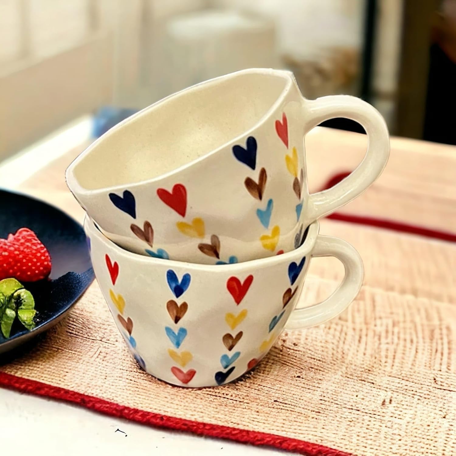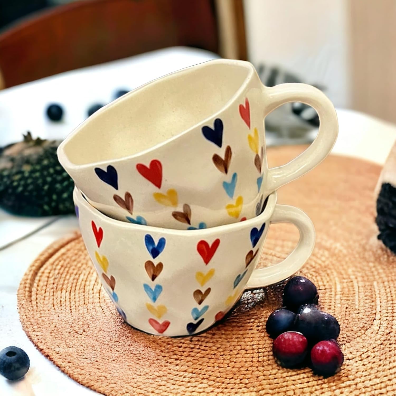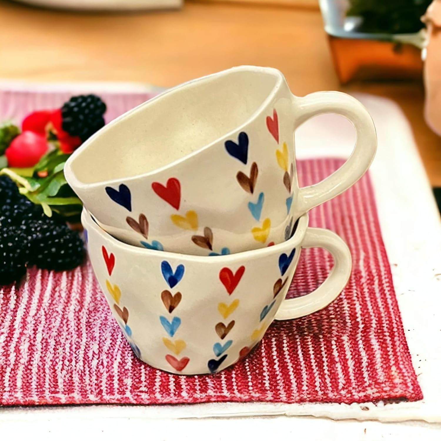 Each mug is handcrafted, so tiny variations in glaze or heart placement make every piece uniquely charming π