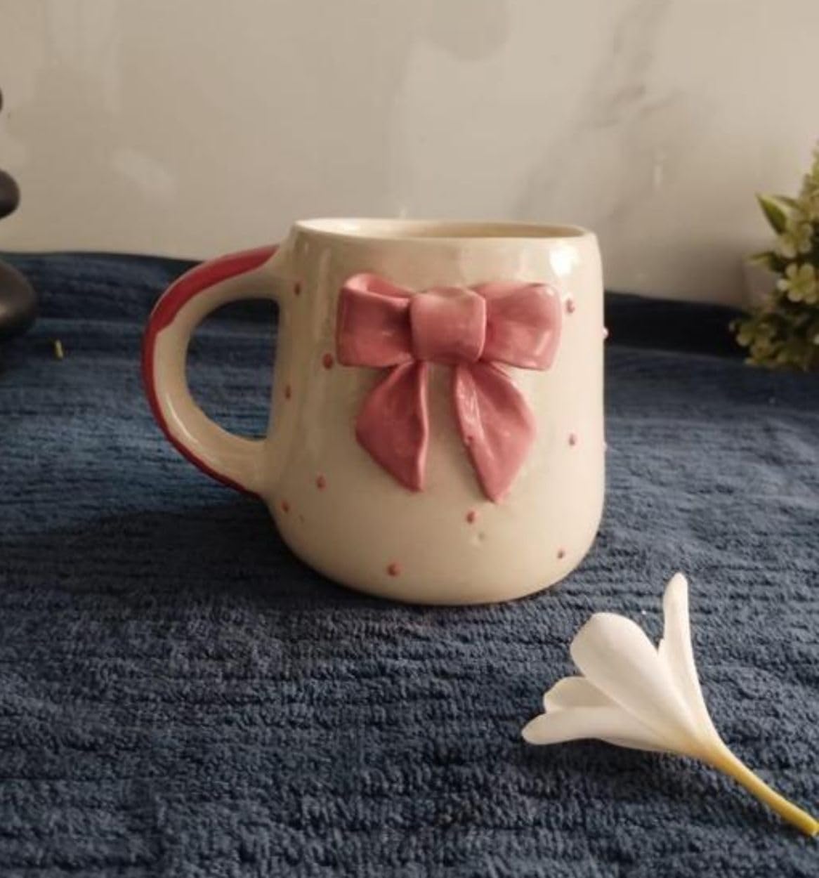 Add a dash of charm to your morning routine with the Handmade Pink Bow Ceramic Coffee Mug from Sipistryz.