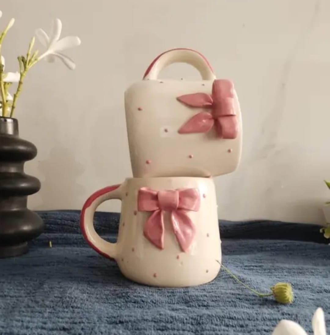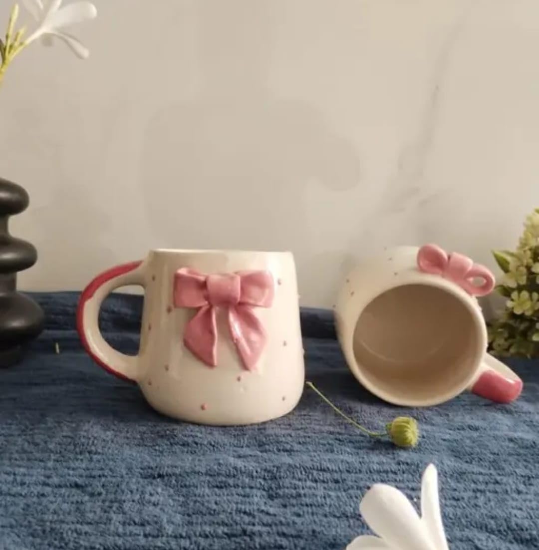 Featuring a 3D sculpted pink bow and dainty pastel details, this handmade mug brings elegance and sweetness to every sip. Crafted by skilled Indian artisans, each mug carries a unique, handcrafted touch that makes your drinkware feel extra special.
