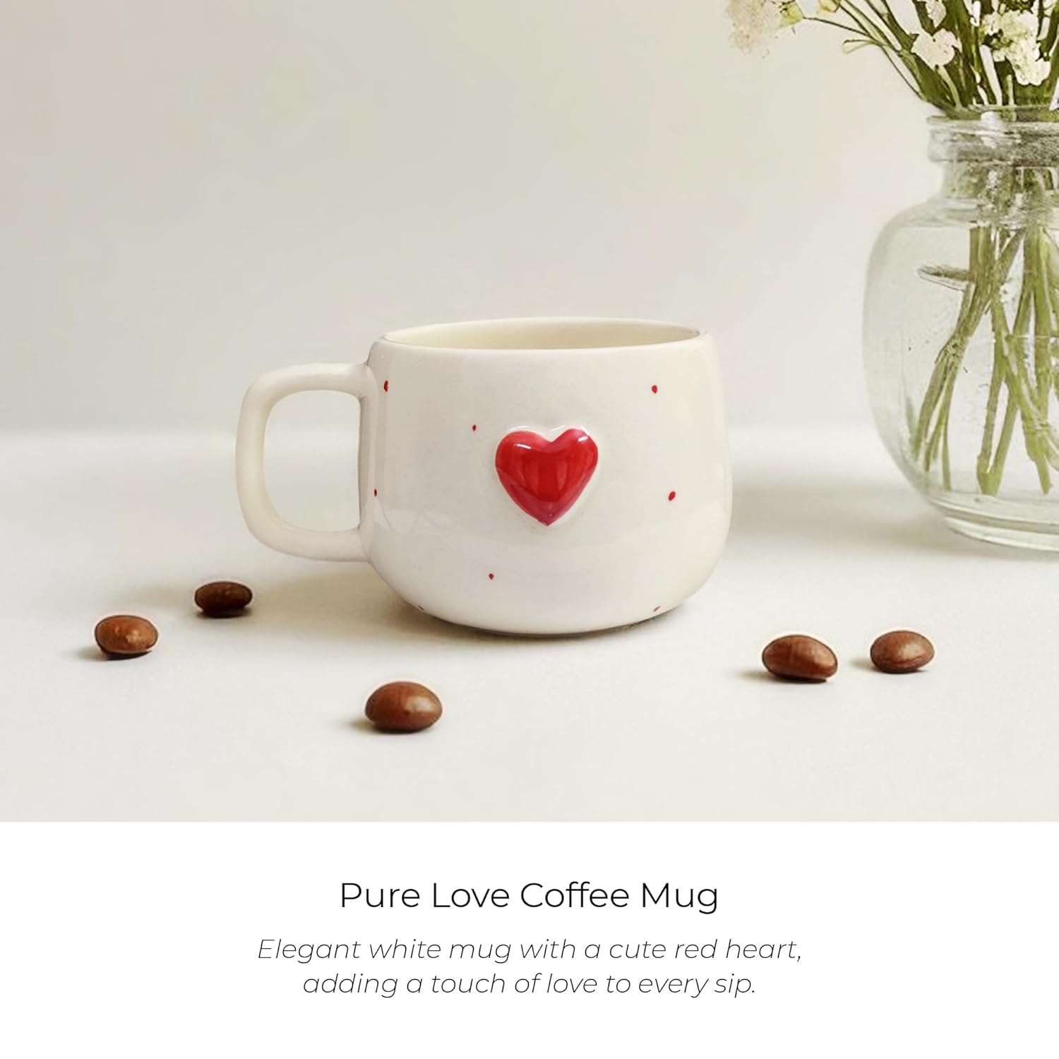 Handmade ceramic mug with cute 3D red heart design 💖 Perfect 250ml cup for coffee & tea — microwave-safe, dishwasher-friendly & ideal for gifting couples, besties & loved ones. Cozy, aesthetic & romantic ☕🌸✨