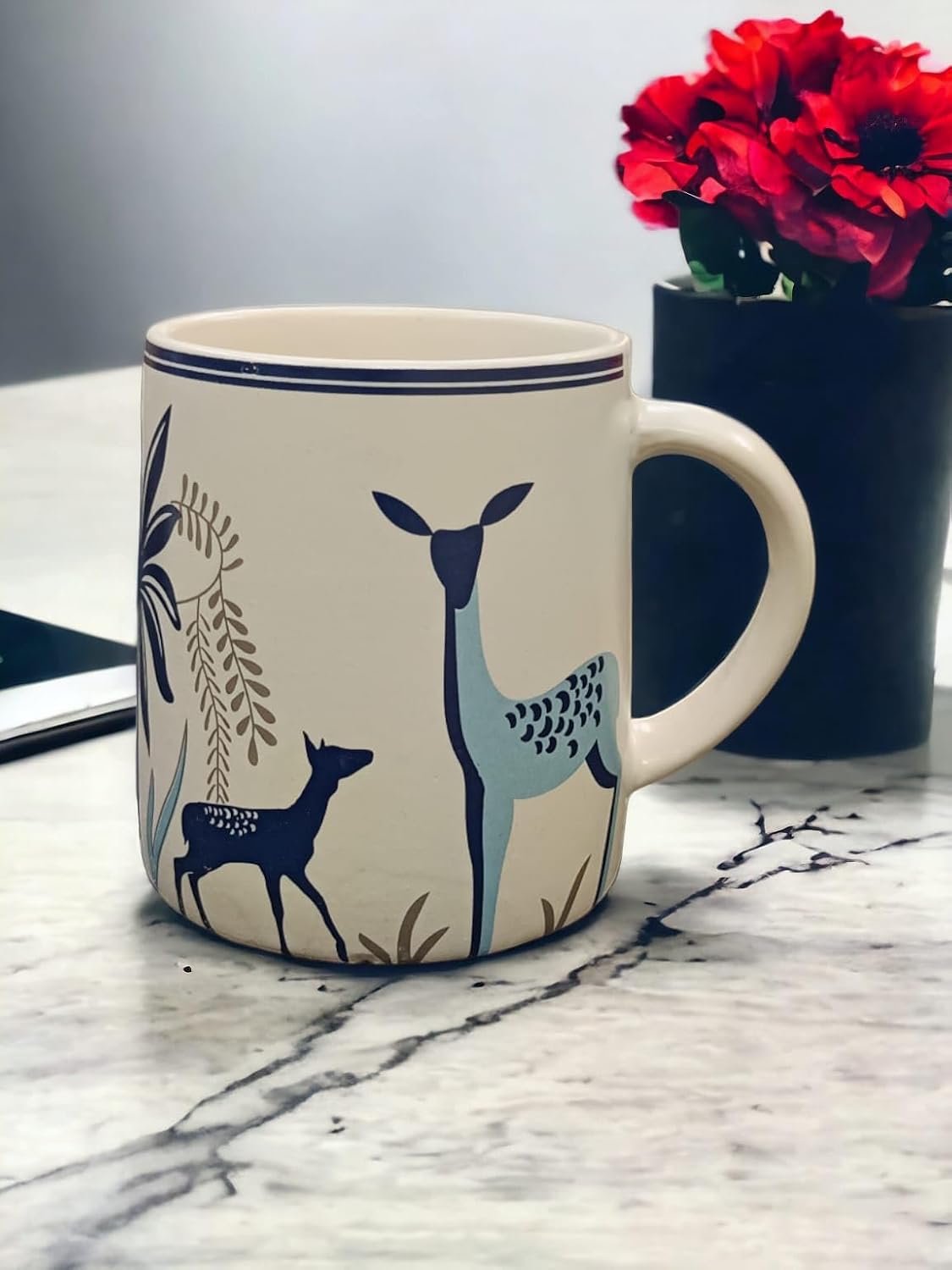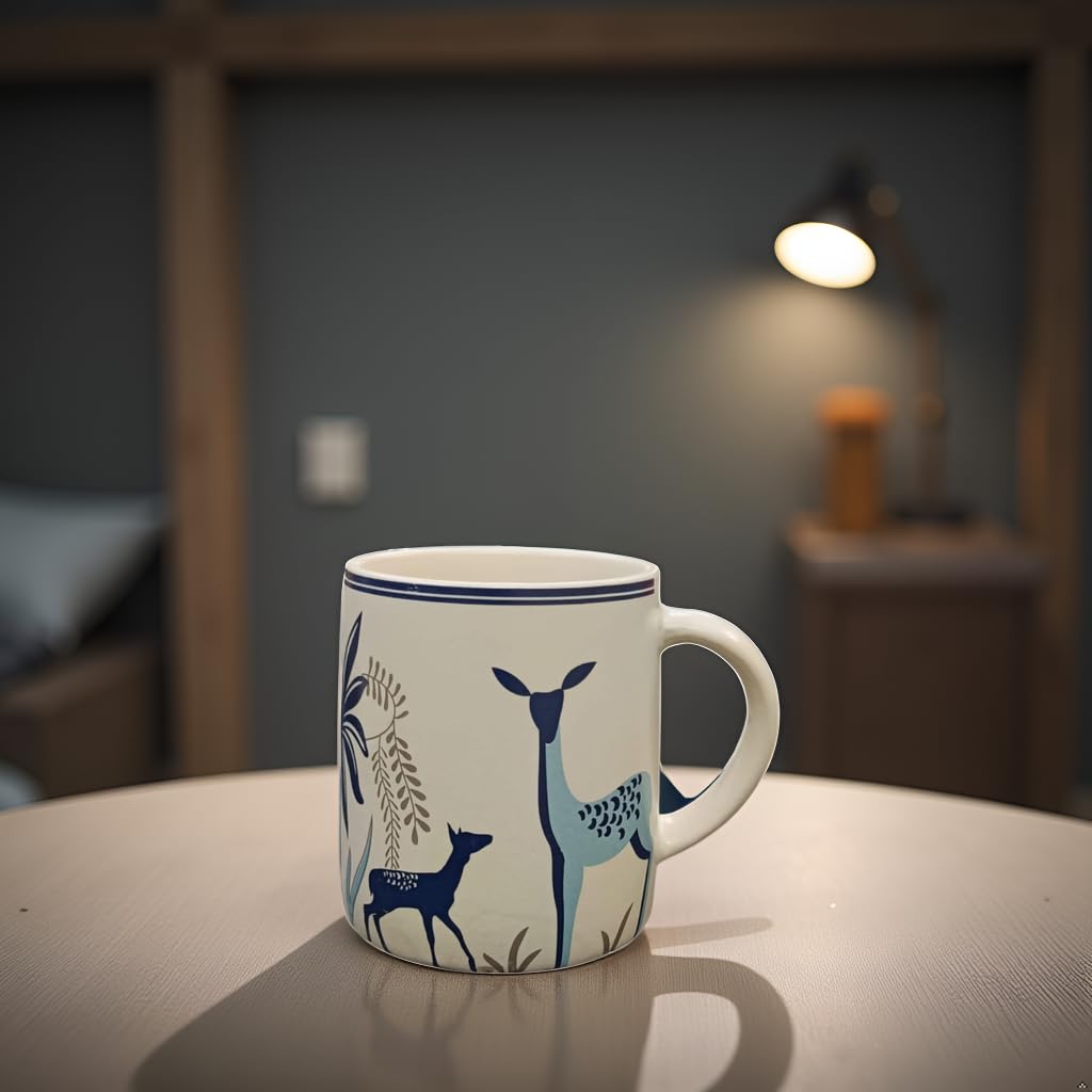 The matte jungle-inspired blue tone with subtle textured detailing brings a natural charm to your workspace or kitchen. Whether used at home, in the office, or as part of your deskware setup, this handmade ceramic coffee mug delivers both sophistication and functionality.