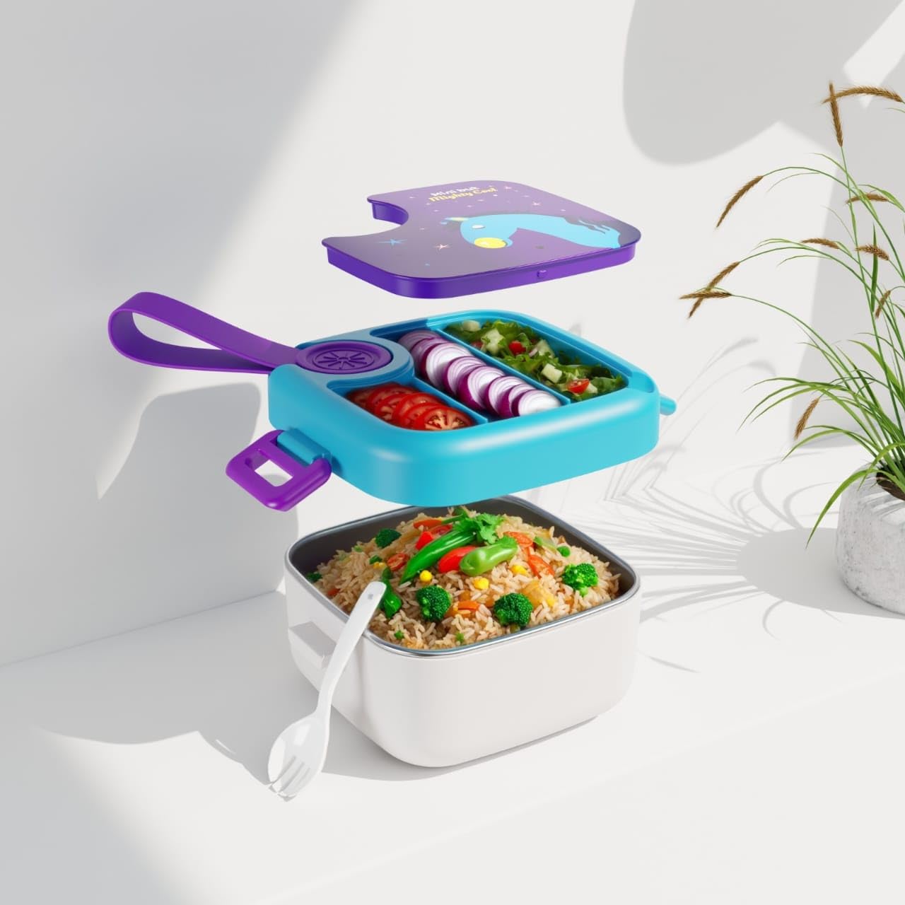 Crafted from high-quality, food-grade stainless steel, this lunch box is durable, rust-proof, and BPA-free, making it safe for everyday use. The personalized design adds a unique touch, so your little one can carry their lunch in style!