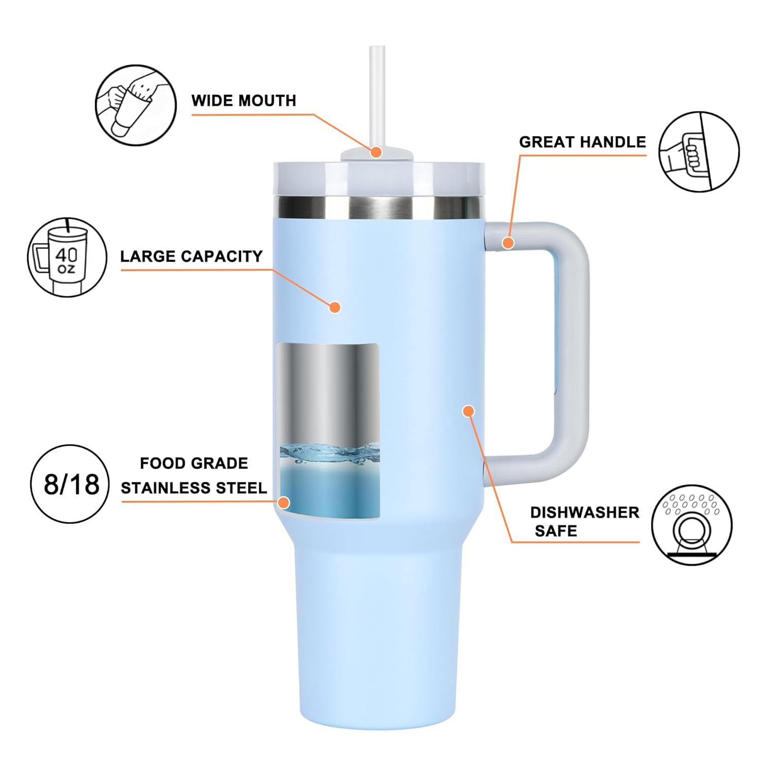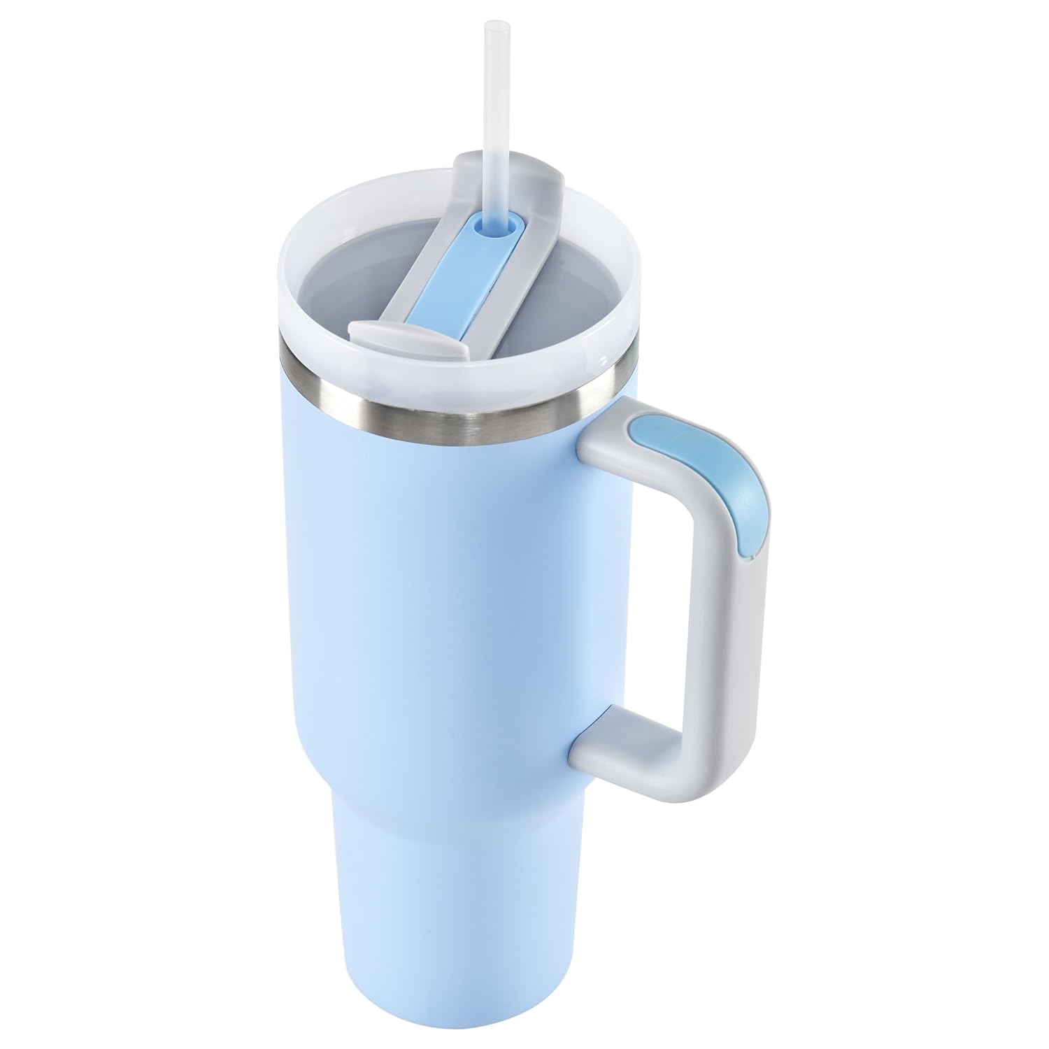 Featuring a comfortable ergonomic handle, a spill-proof flip lid, and a reusable straw, this tumbler is practical and stylish. Its sleek sky blue design adds a refreshing aesthetic wherever you go.