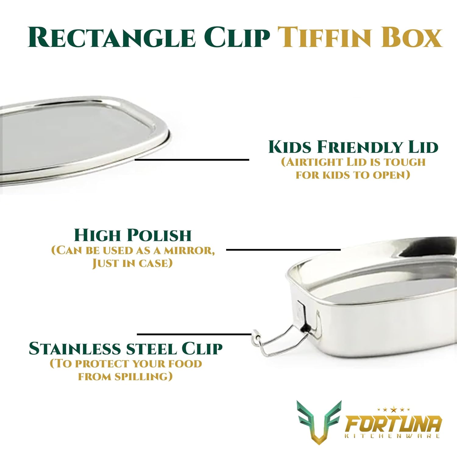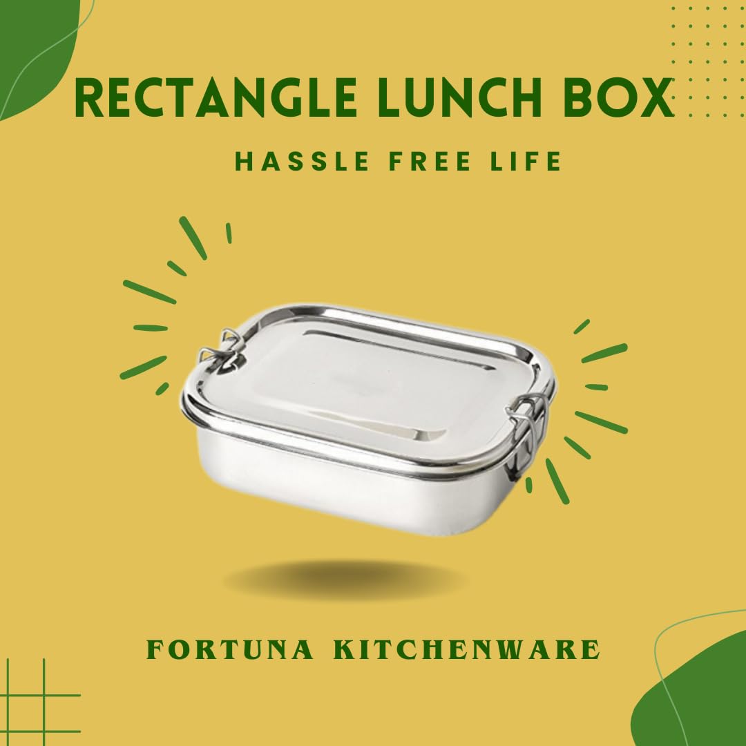 The rectangle design along with an inner box ensures better food organizationโgreat for packing snacks, curries, salads, or dry meals. The secure locking clip keeps the lid tightly sealed, making the tiffin leak-proof and travel-friendly.