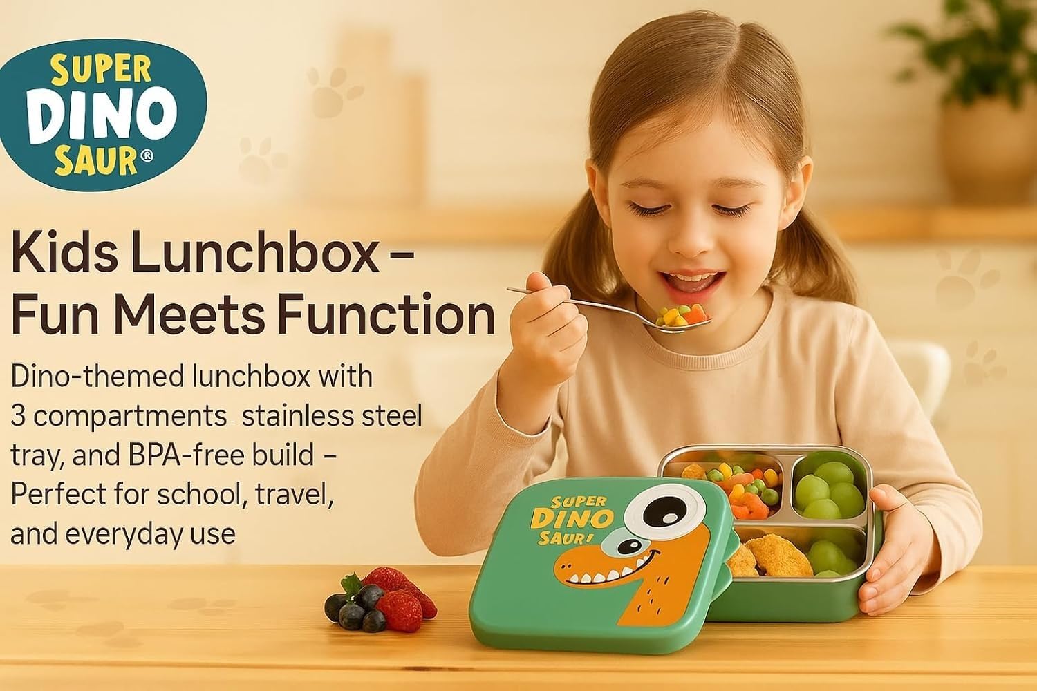 Make lunchtime fun, safe, and mess-free with the Super Bite Buddy Lunch Box ๐ฑ๐งก, designed for school kids and travel!